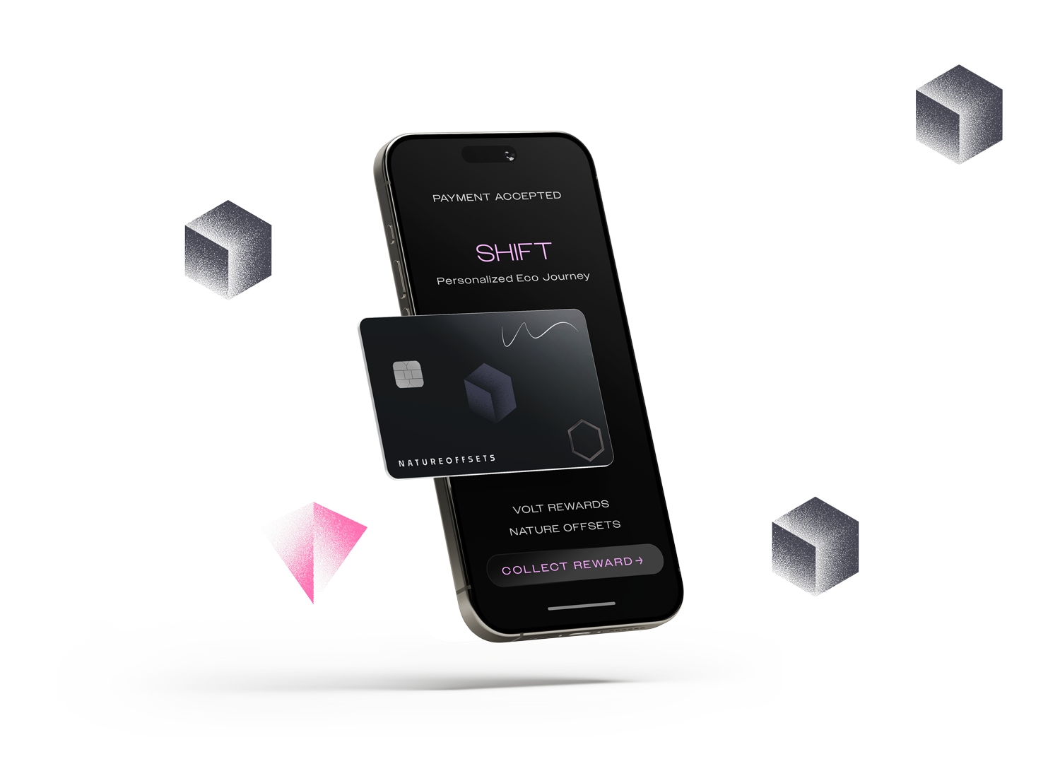 Shift™ automatically offsets a percentage of every transaction, directing it to verified nature-based projects.